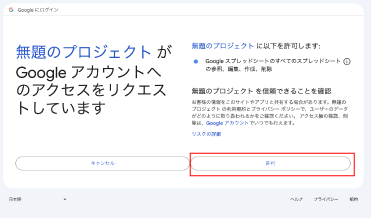 ページが遷移して、「無題のプロジェクトがGoogleアカウントへのアクセスをリクエストしています」と表示されます。下にある許可をクリックしてください。