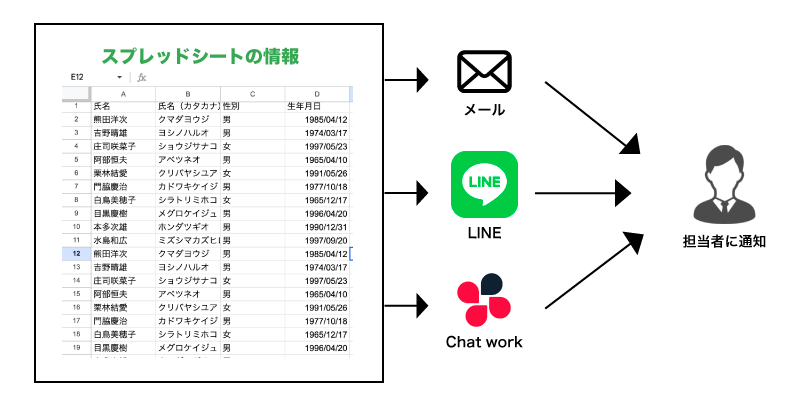 - スプレッドシートの情報をボタンでChat workに情報を送信